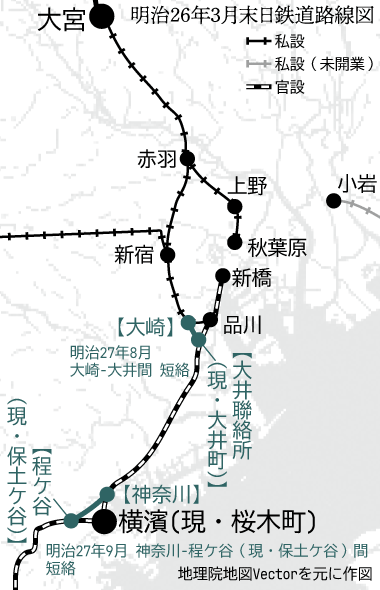 - 横浜の鉄道の歴史についてざっと概説してあります.写真もあり.この時期の鉄道の発達は軍と切り離せない.